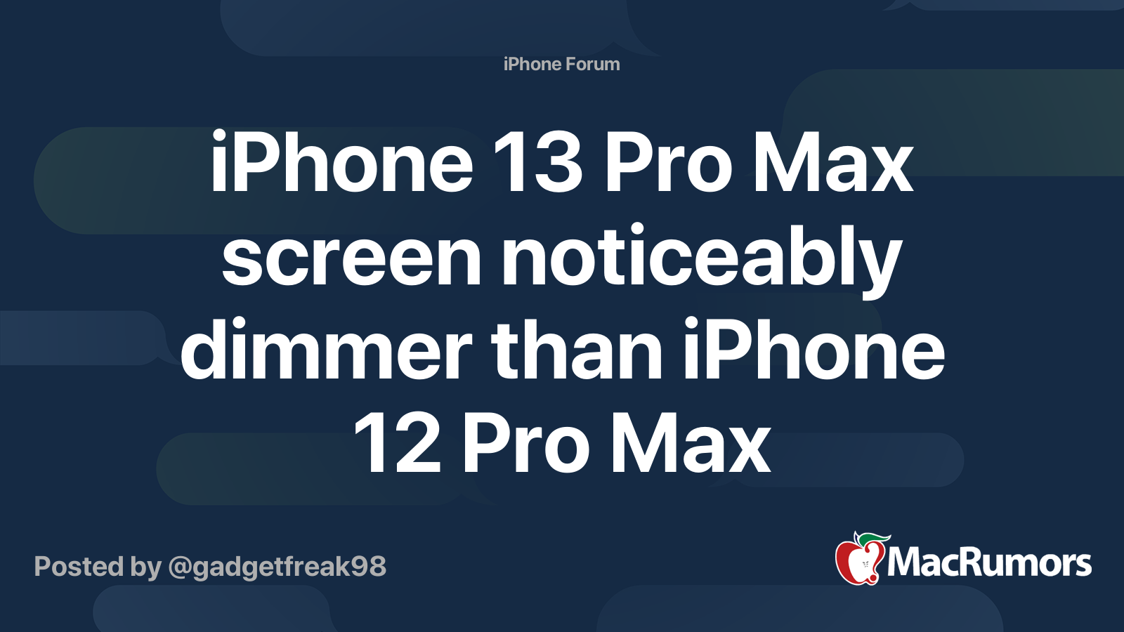 Iphone 13 Pro Max Screen Noticeably Dimmer Than Iphone 12 Pro Max Macrumors Forums